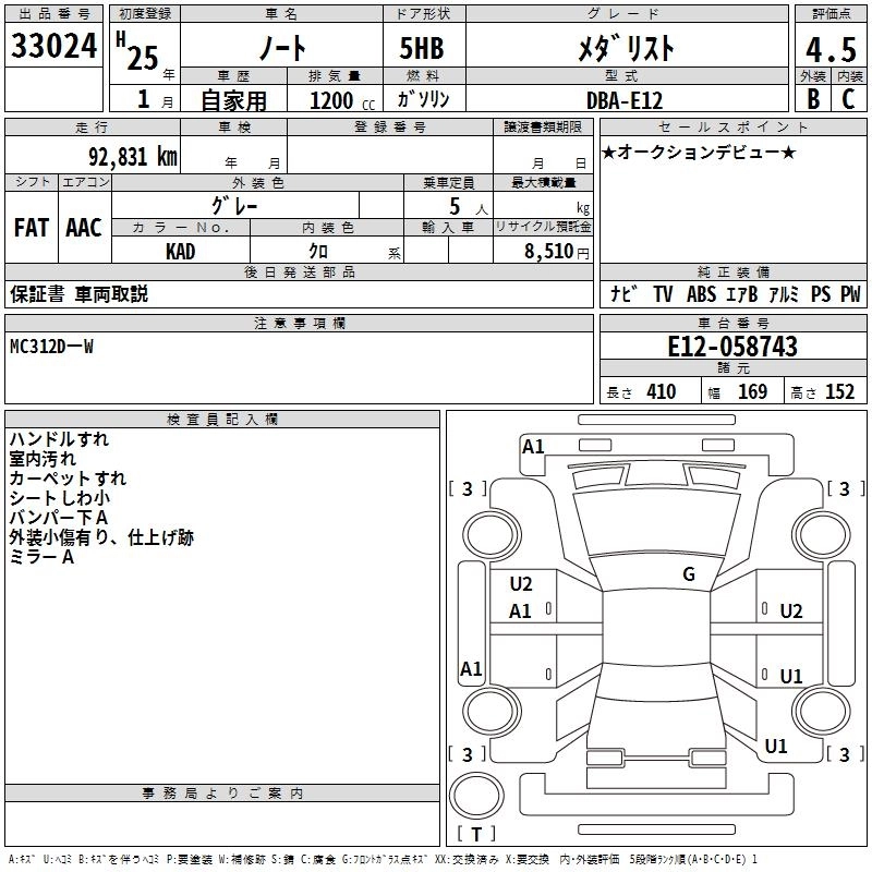 NISSAN NOTE 2013 г., лот № 33024