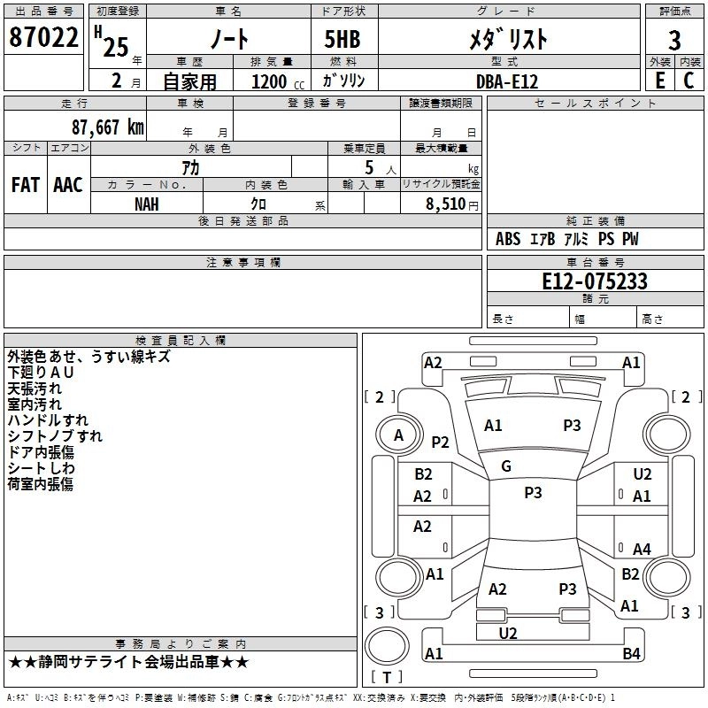NISSAN NOTE 2013 г., лот № 87022