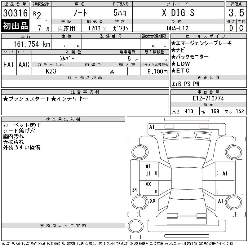 Статус выставлен на аукцион Лот 30316 Аукцион CAA Chubu Дата аукциона 11.03.2026