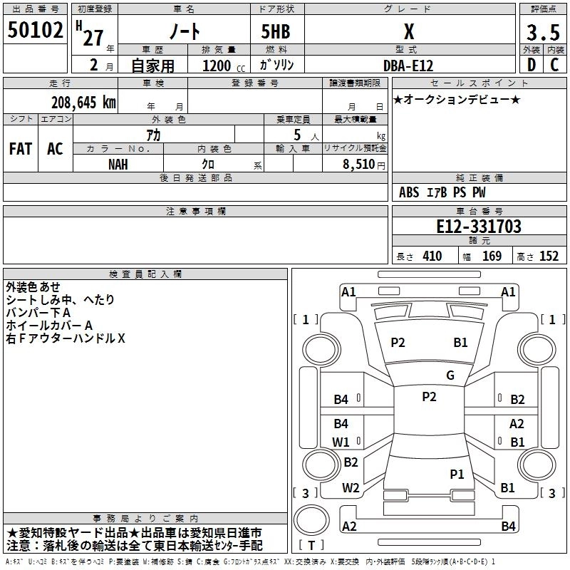 NISSAN NOTE 2015 г., лот № 50102