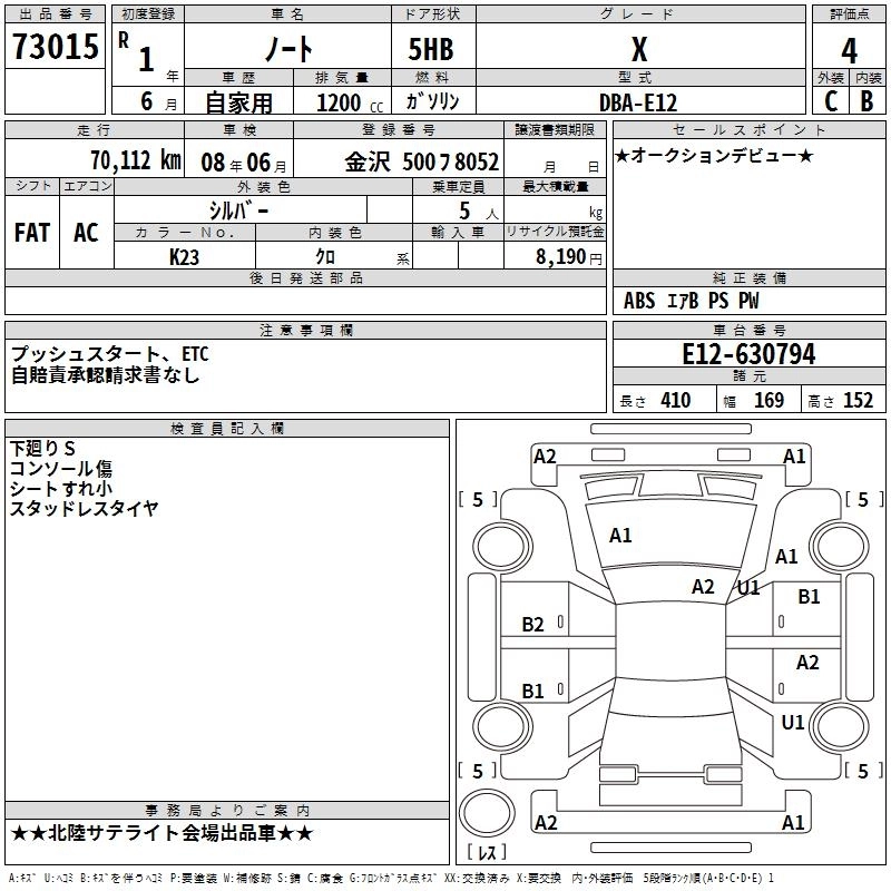 Статус выставлен на аукцион Лот 73015 Аукцион TAA Chubu Дата аукциона 12.03.2026