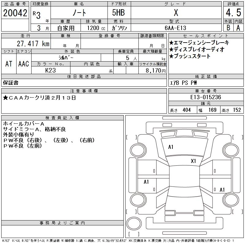 Статус выставлен на аукцион Лот 20042 Аукцион CAA Chubu Дата аукциона 11.03.2026