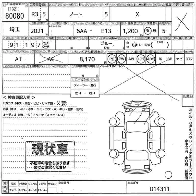 NISSAN NOTE 2021 г., лот № 80080