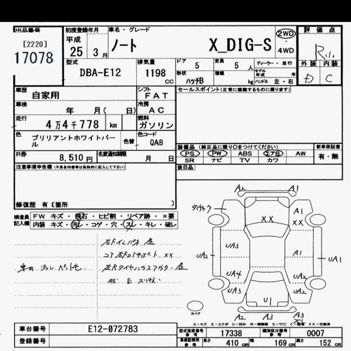 NISSAN NOTE 2013 г., лот № 17078
