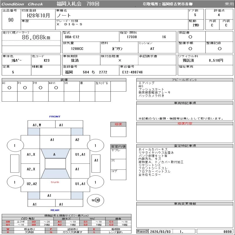 Статус выставлен на аукцион Лот 90 Аукцион ORIX Fukuoka Дата аукциона 10.03.2026
