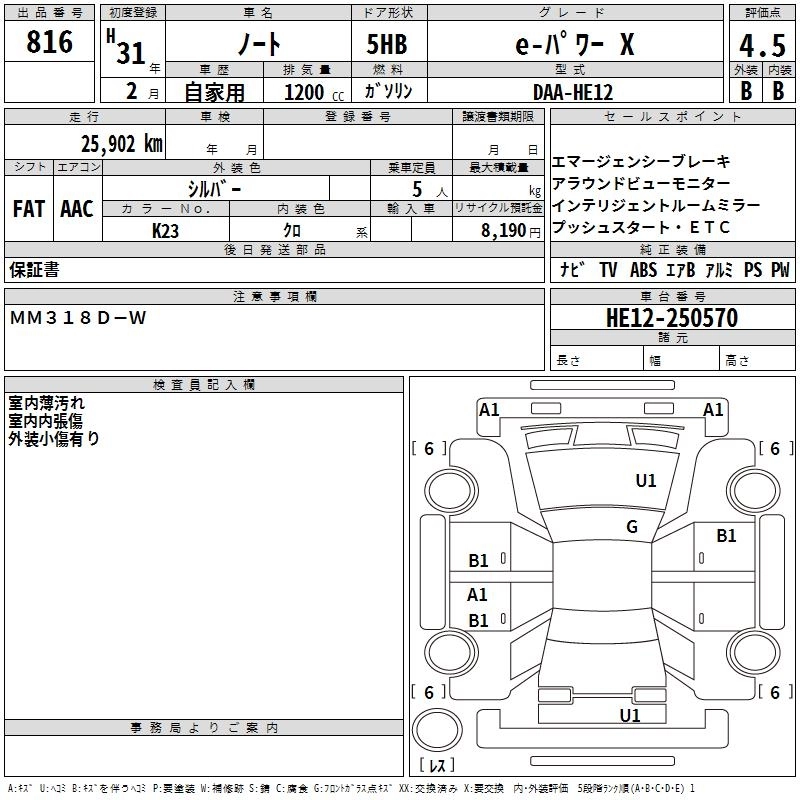 NISSAN NOTE 2019 г., лот № 816