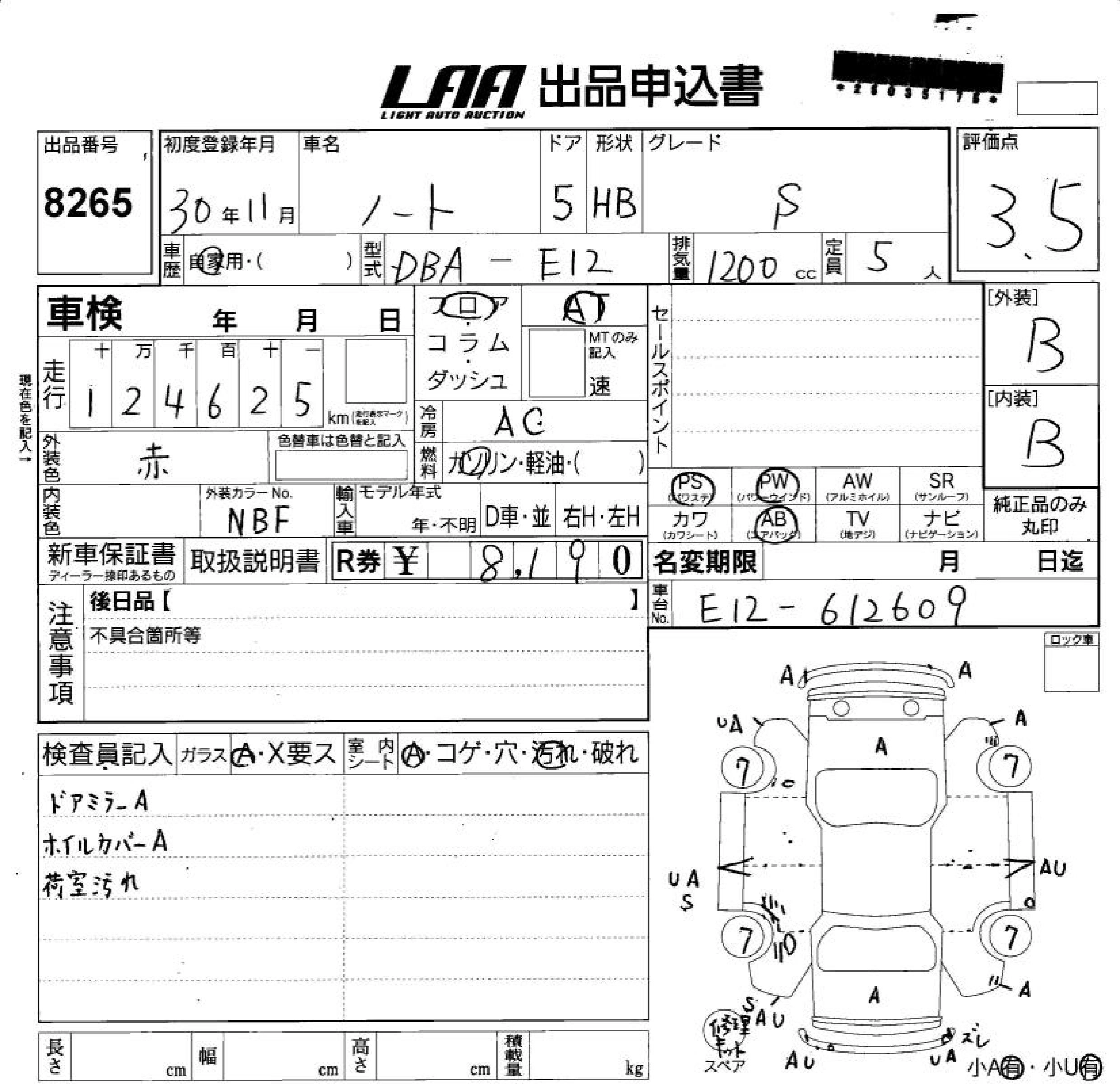 Статус выставлен на аукцион Лот 8265 Аукцион LAA Shikoku Дата аукциона 11.03.2026