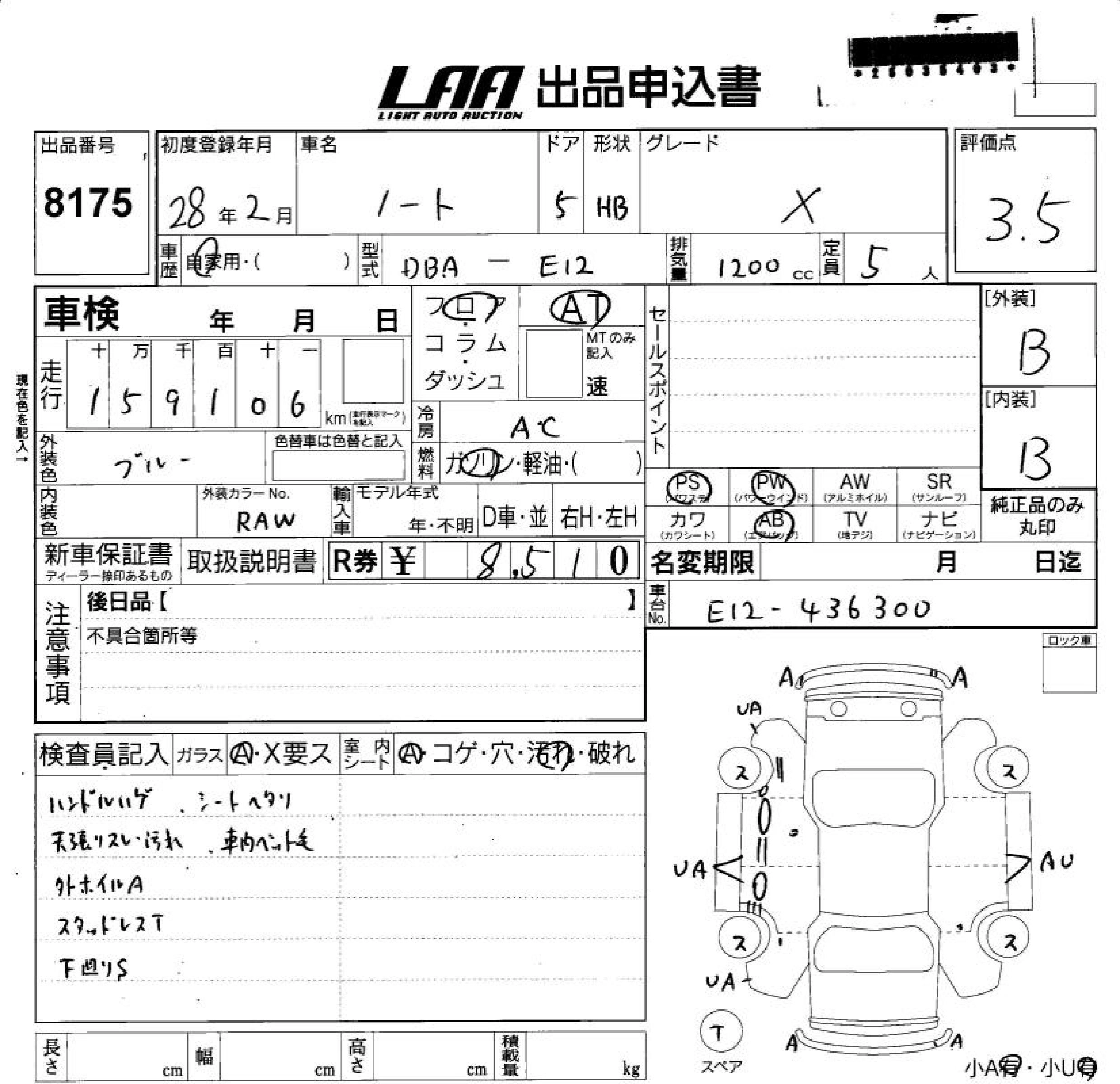 Статус выставлен на аукцион Лот 8175 Аукцион LAA Shikoku Дата аукциона 11.03.2026