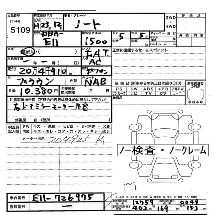 NISSAN NOTE 2011 г., лот № 5109