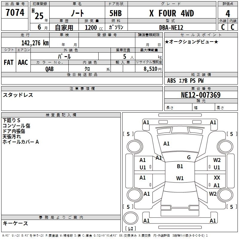 NISSAN NOTE 2013 г., лот № 7074