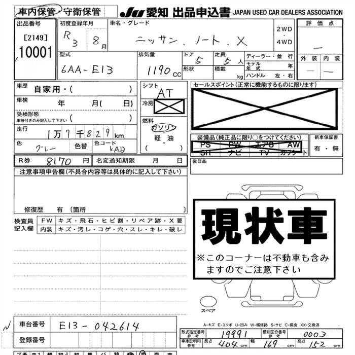 Статус выставлен на аукцион Лот 10001 Аукцион JU Aichi Дата аукциона 12.03.2026