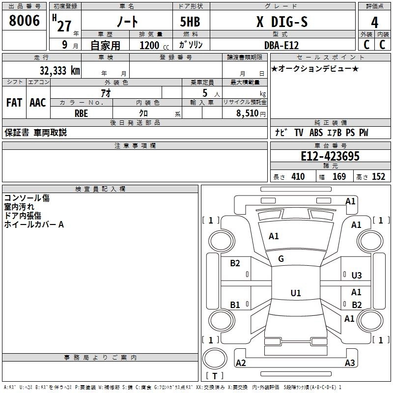 Статус выставлен на аукцион Лот 8006 Аукцион TAA Chubu Дата аукциона 12.03.2026