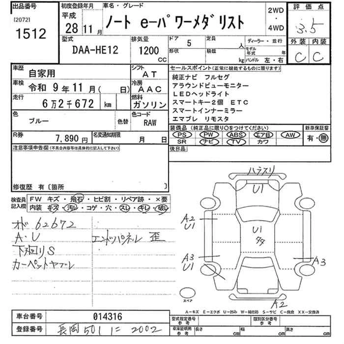 NISSAN NOTE 2016 г., лот № 1512