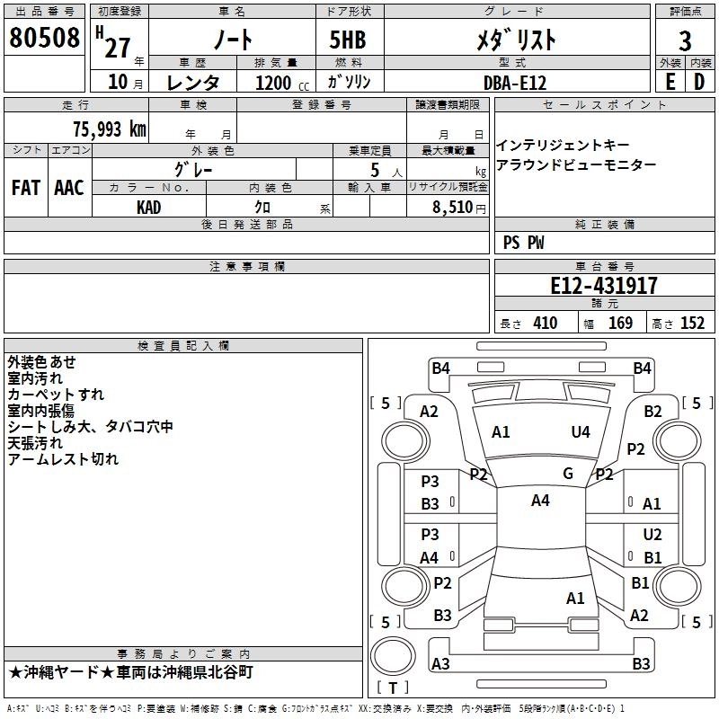 NISSAN NOTE 2015 г., лот № 80508