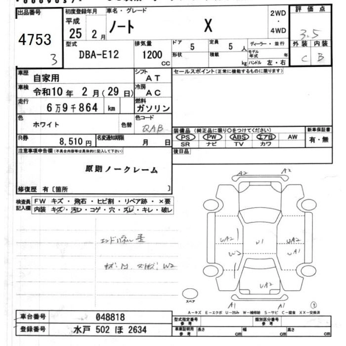 NISSAN NOTE 2013 г., лот № 4753