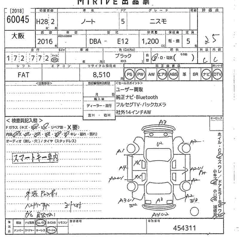 NISSAN NOTE 2016 г., лот № 60045
