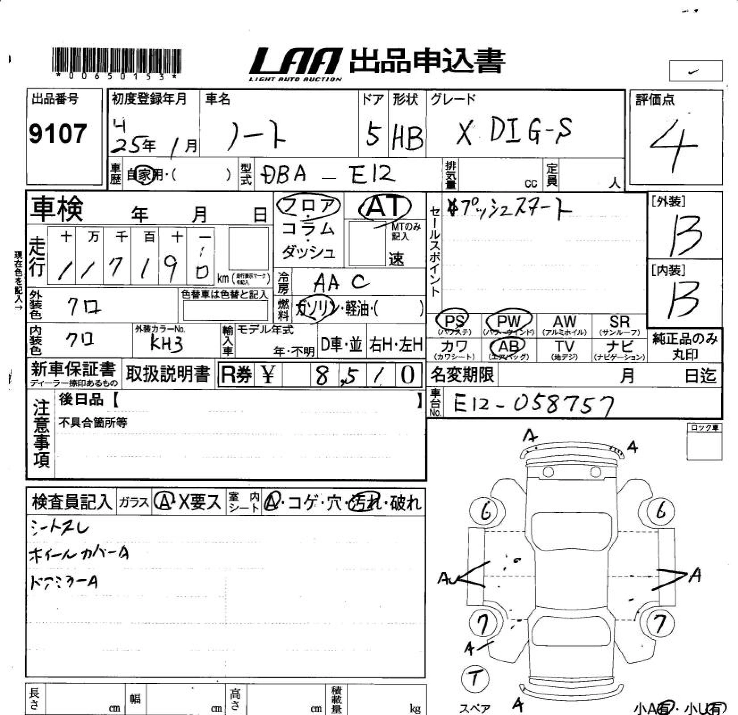 NISSAN NOTE 2013 г., лот № 9107