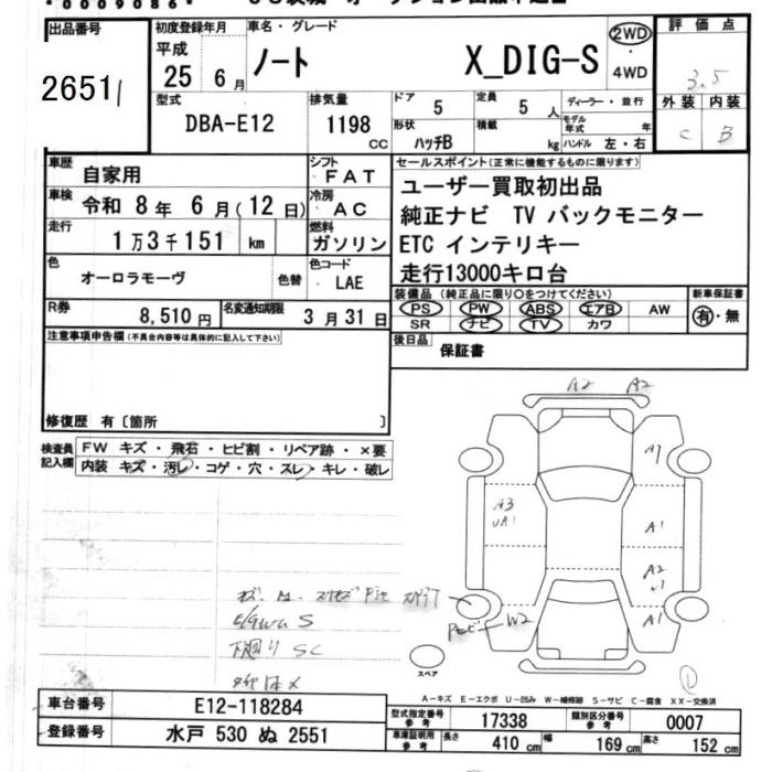 NISSAN NOTE 2013 г., лот № 2651