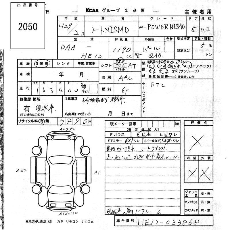 NISSAN NOTE 2017 г., лот № 2050