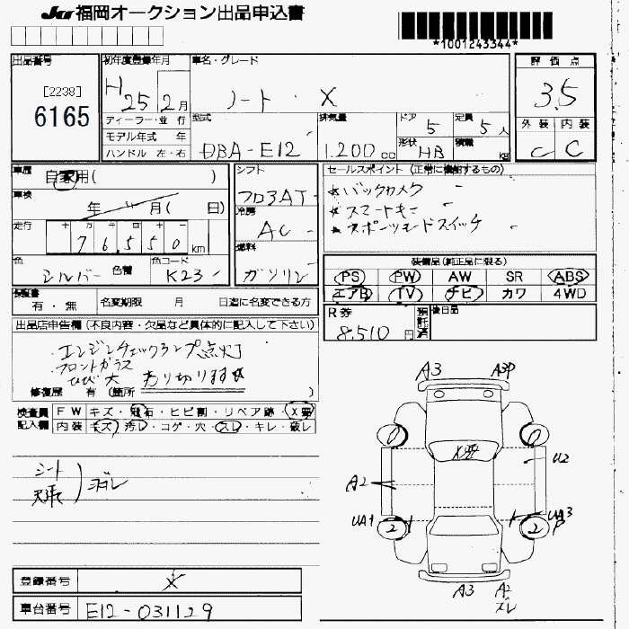 Статус продан Лот 6165 Аукцион JU Fukuoka Дата аукциона 13.03.2026