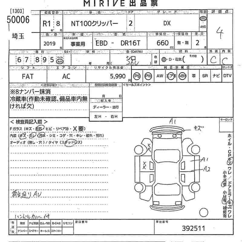NISSAN NT100 CLIPPER 2019 г., лот № 50006