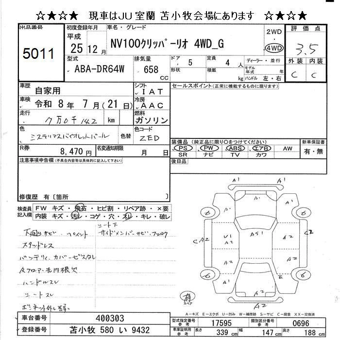 NISSAN NV100 CLIPPER RIO 2013 г., лот № 5011