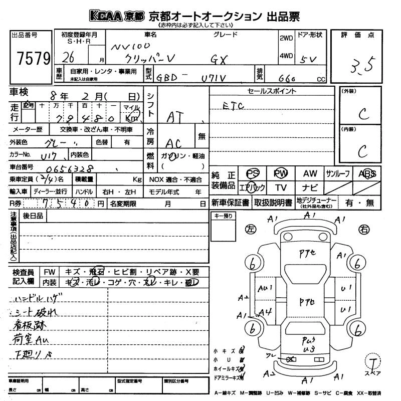 NISSAN NV100 CLIPPER 2014 г., лот № 7579