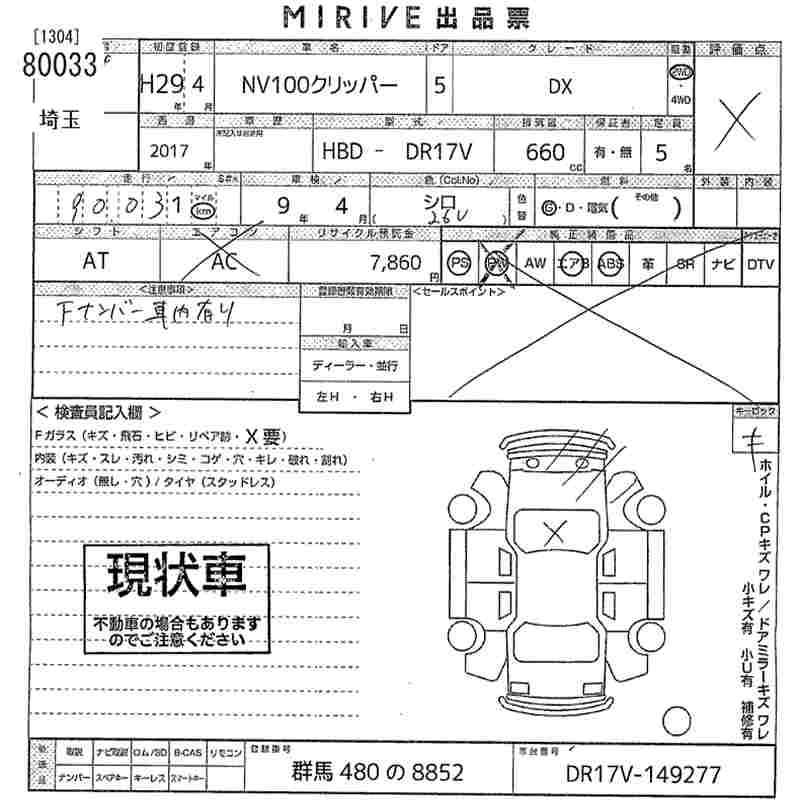Статус выставлен на аукцион Лот 80033 Аукцион MIRIVE Saitama Дата аукциона 05.11.2025
