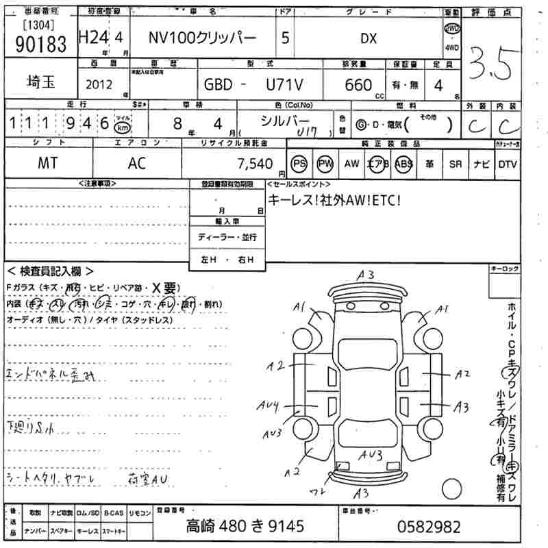 NISSAN NV100 CLIPPER 2012 г., лот № 90183