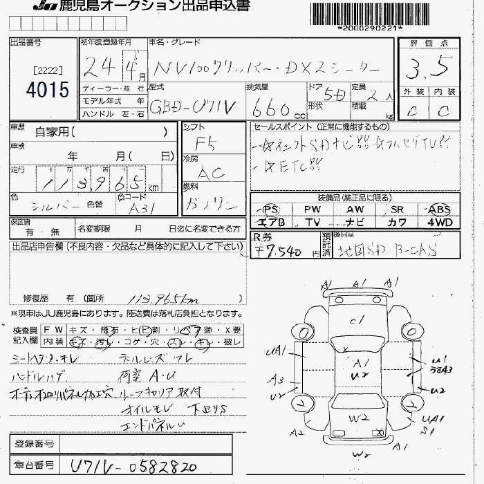 NISSAN NV100 CLIPPER 2012 г., лот № 4015