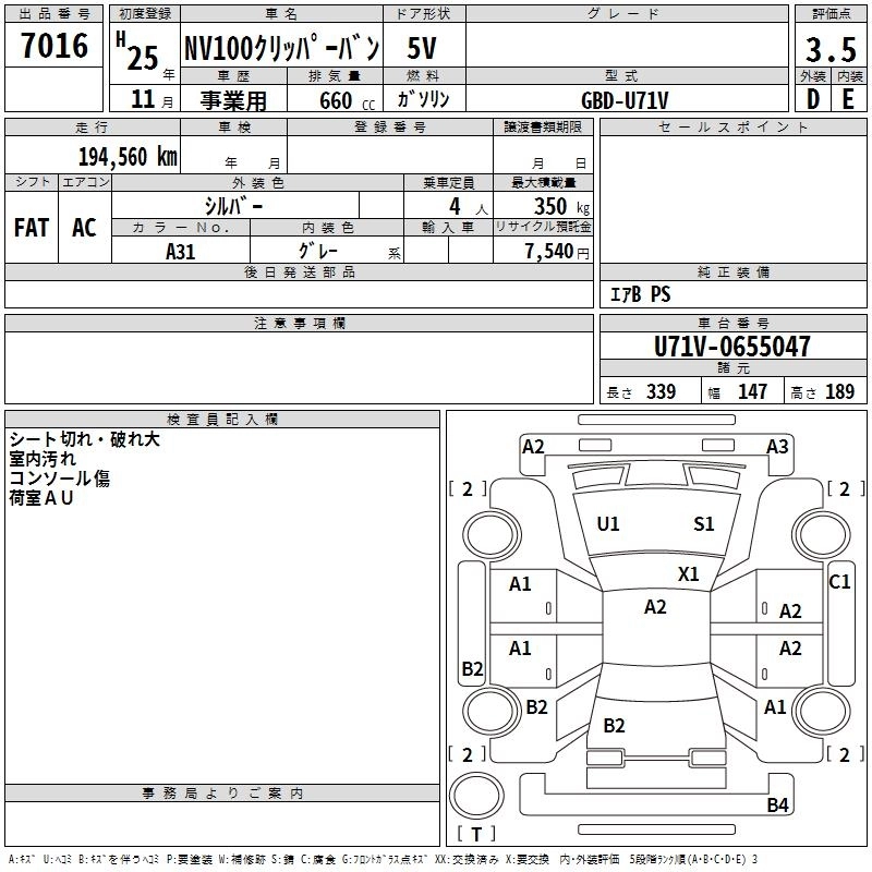 NISSAN NV100 CLIPPER 2013 г., лот № 7016