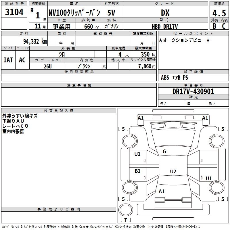 NISSAN NV100 CLIPPER 2019 г., лот № 3104