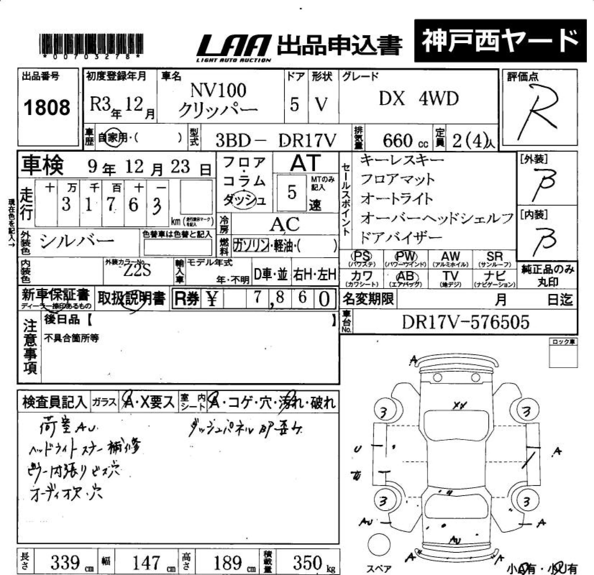 Статус не продан Лот 1808 Аукцион LAA Okayama Дата аукциона 23.01.2026