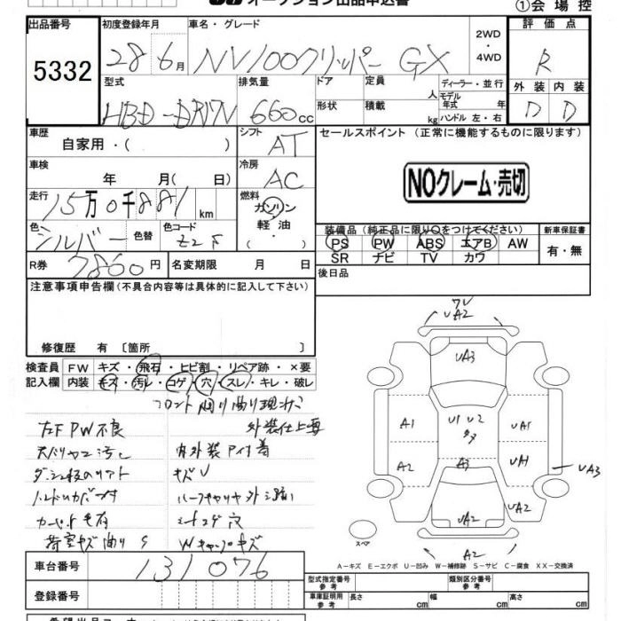 NISSAN NV100 CLIPPER 2016 г., лот № 5332