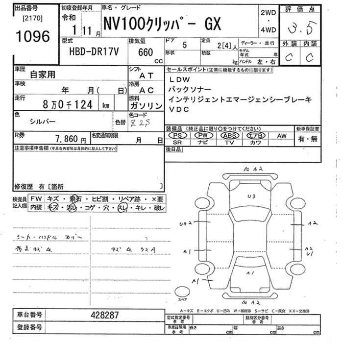 NISSAN NV100 CLIPPER 2019 г., лот № 1096