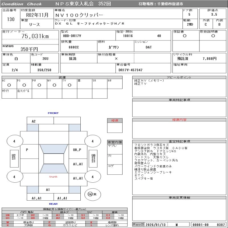 NISSAN NV100 CLIPPER 2020 г., лот № 130