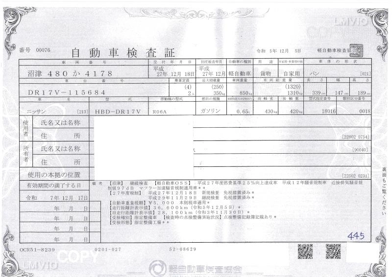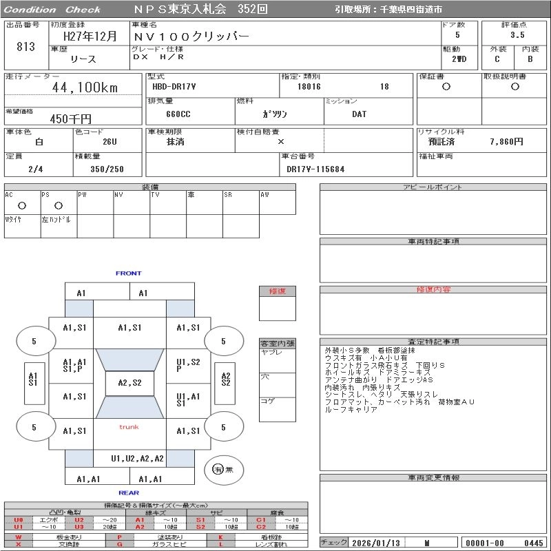 NISSAN NV100 CLIPPER 2015 г., лот № 813
