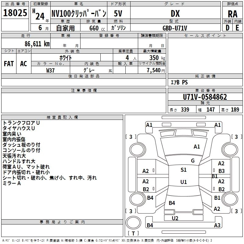 NISSAN NV100 CLIPPER 2012 г., лот № 18025
