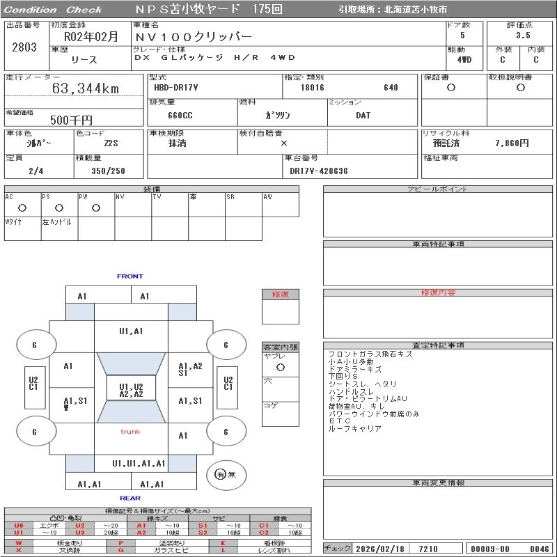 Статус выставлен на аукцион Лот 2803 Аукцион NPS Tomakomai Дата аукциона 10.03.2026