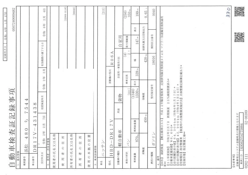 NISSAN NV100 CLIPPER 2020 г., лот № 122