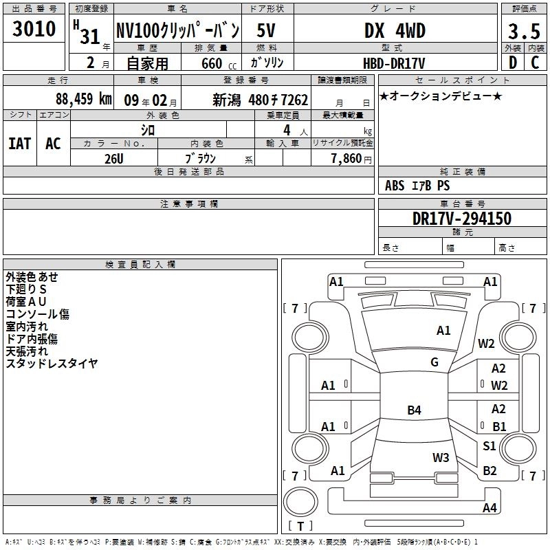 NISSAN NV100 CLIPPER 2019 г., лот № 3010