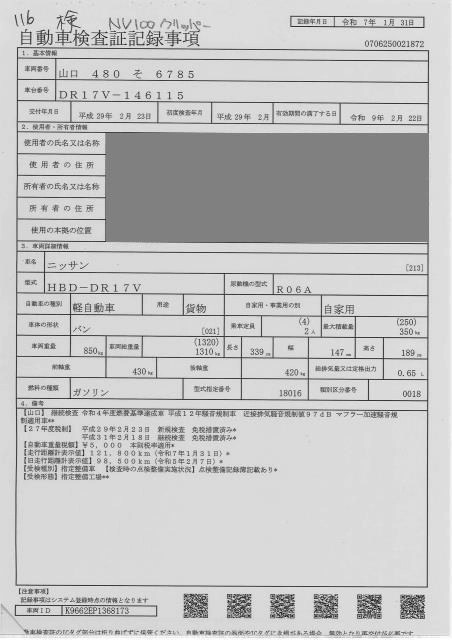 NISSAN NV100 CLIPPER 2017 г., лот № 116