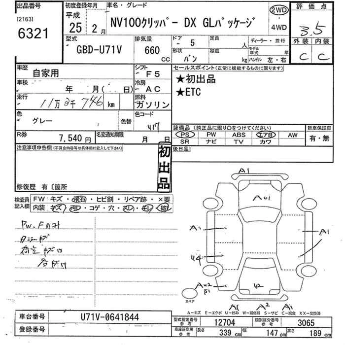 NISSAN NV100 CLIPPER 2013 г., лот № 6321