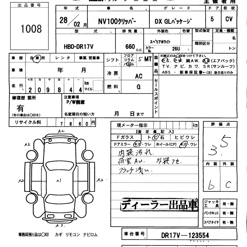 NISSAN NV100 CLIPPER 2016 г., лот № 1008