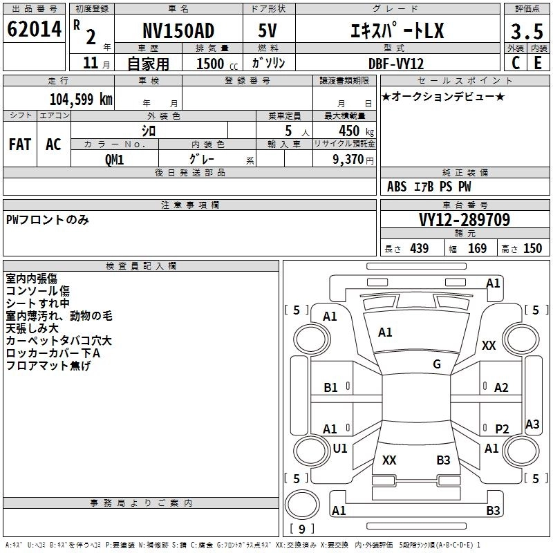 NISSAN NV150 AD 2020 г., лот № 62014