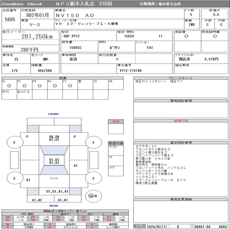 Статус выставлен на аукцион Лот 5605 Аукцион NPS Tochigi Дата аукциона 10.03.2026