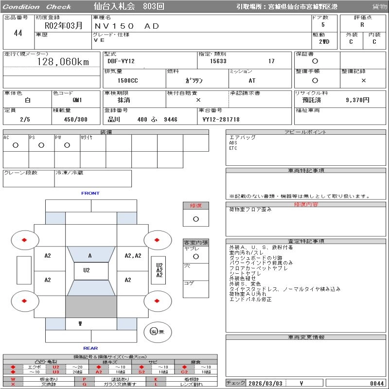Статус выставлен на аукцион Лот 44 Аукцион ORIX Sendai Дата аукциона 10.03.2026