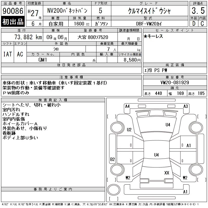 NISSAN NV200 VANETTE VAN 2015 г., лот № 90086