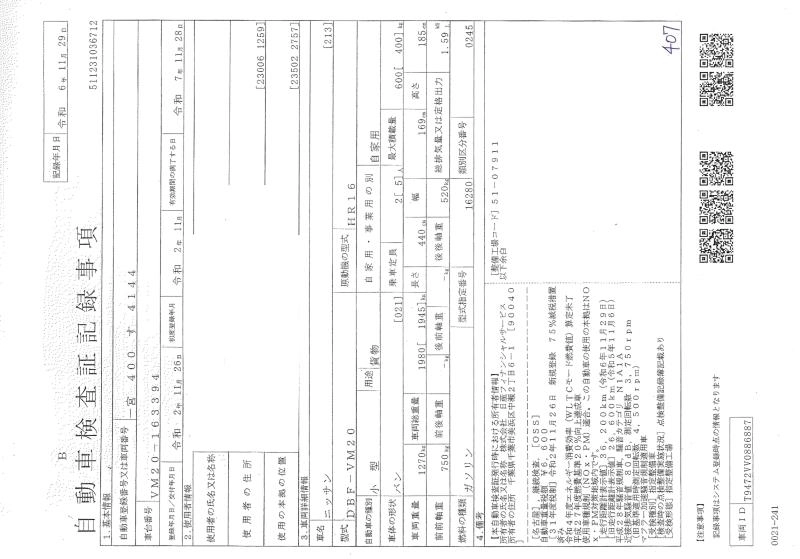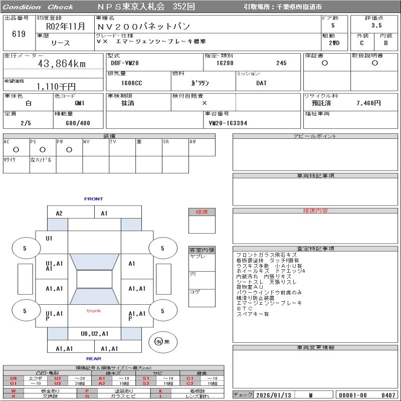 NISSAN NV200 VANETTE VAN 2020 г., лот № 619