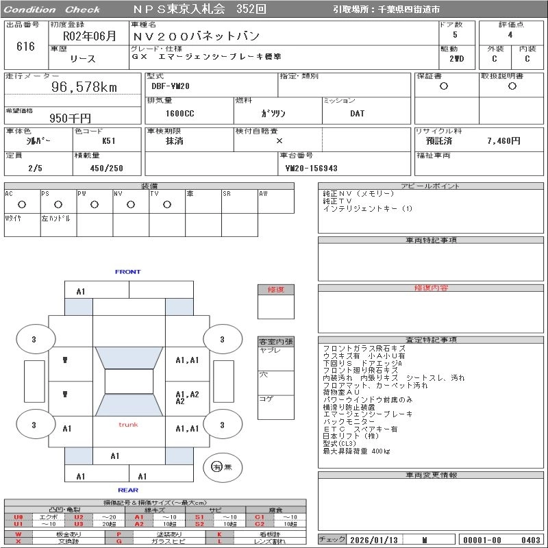 NISSAN NV200 VANETTE VAN 2020 г., лот № 616